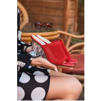 Akva Kırmızı Triko Şeffaf Topuklu Terlik