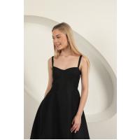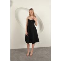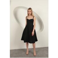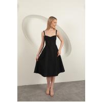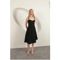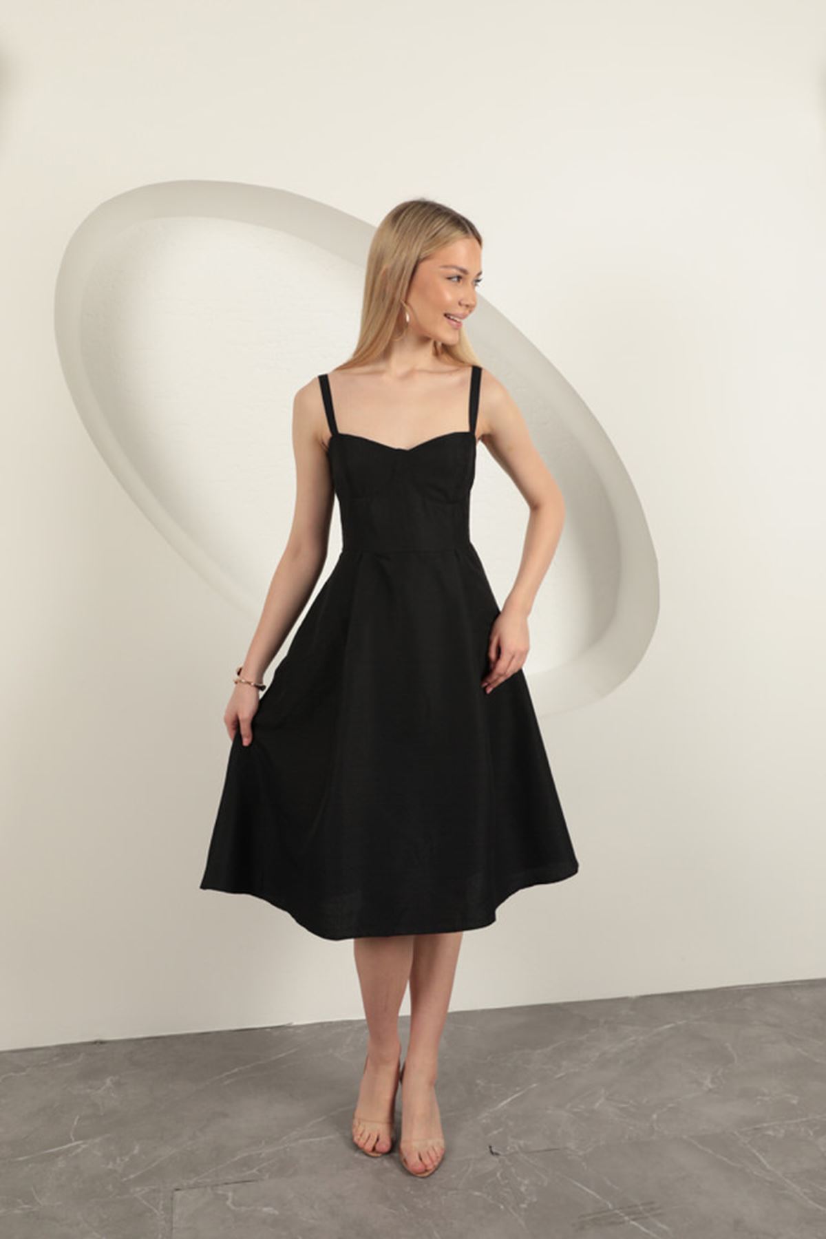 Askılı Midi Elbise-Siyah