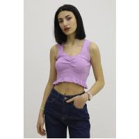 Bel Lastikli Triko Bluz Lila - P-019708