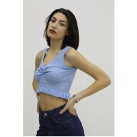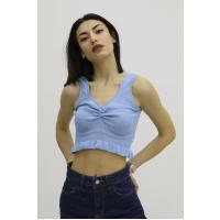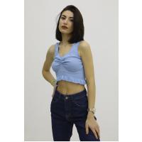 Bel Lastikli Triko Bluz Mavi - P-019708