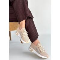 Belan Bej Triko Bağcıklı Spor Ayakkabı