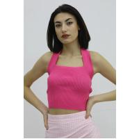 Boyun Geçirmeli Triko Büstiyer Fuşya - P-019915