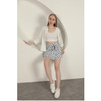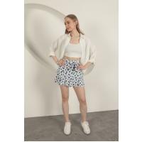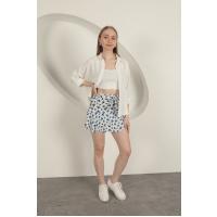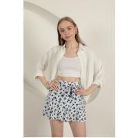Bürümcük Çiçek Desen Şort Etek-Saks
