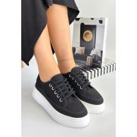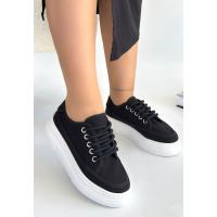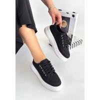 Carin Siyah Keten Bağcıklı Spor Ayakkabı