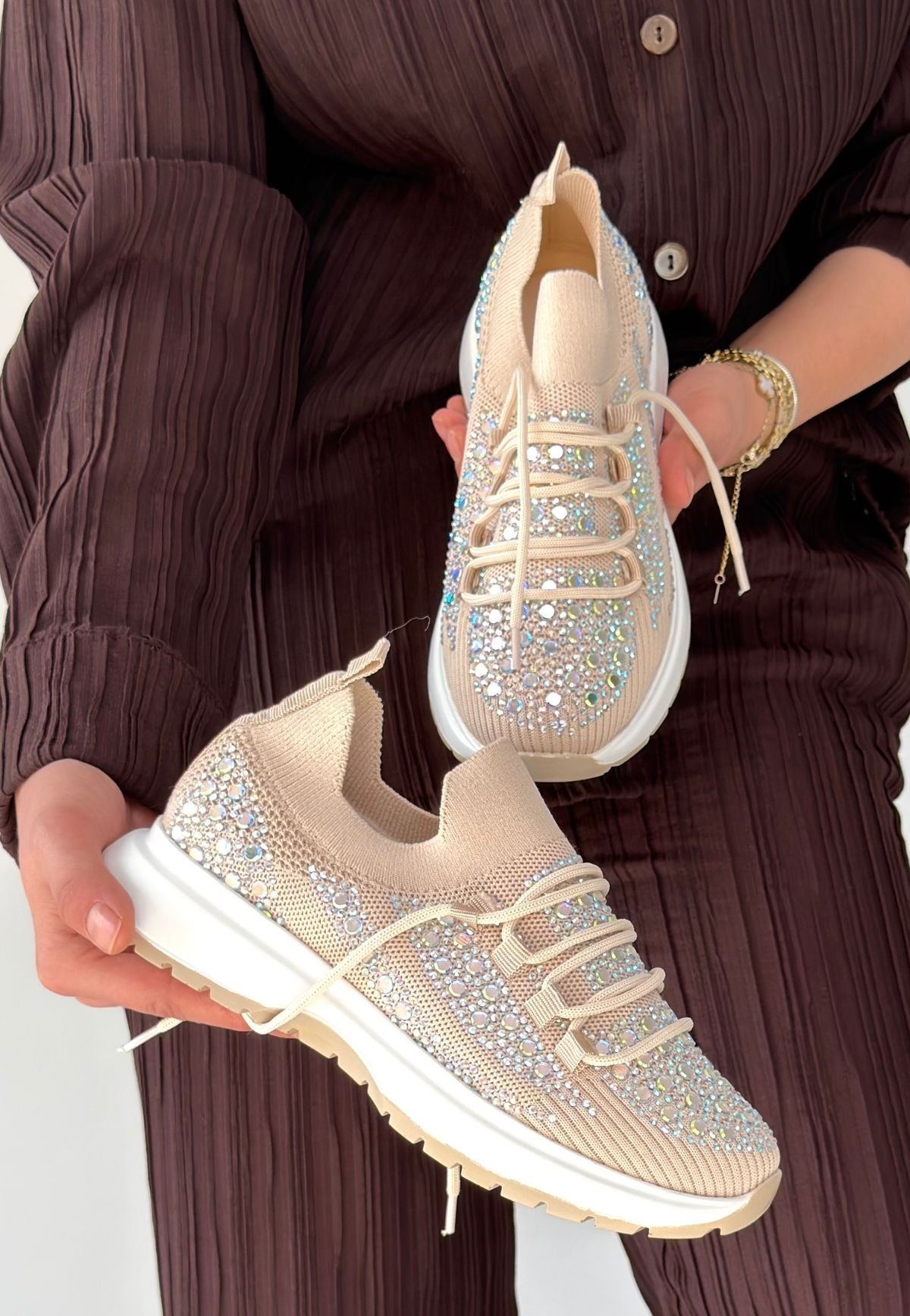 Ceas Bej Triko Bağcıklı Spor Ayakkabı
