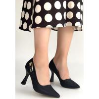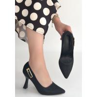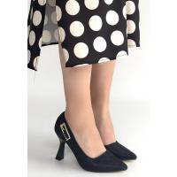 Cerin Siyah Saten Simli Topuklu Ayakkabı