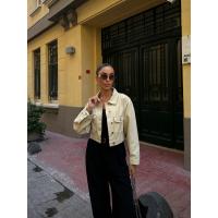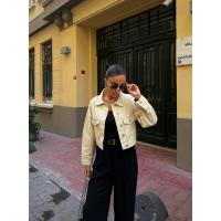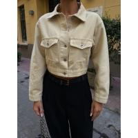 Çift Cep Denim Crop Ceket