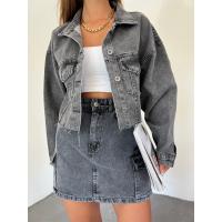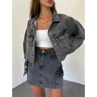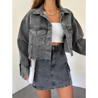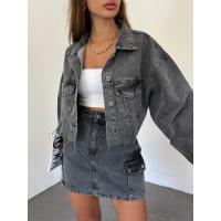 Çift Cepli Yıkamalı Crop Denim Ceket