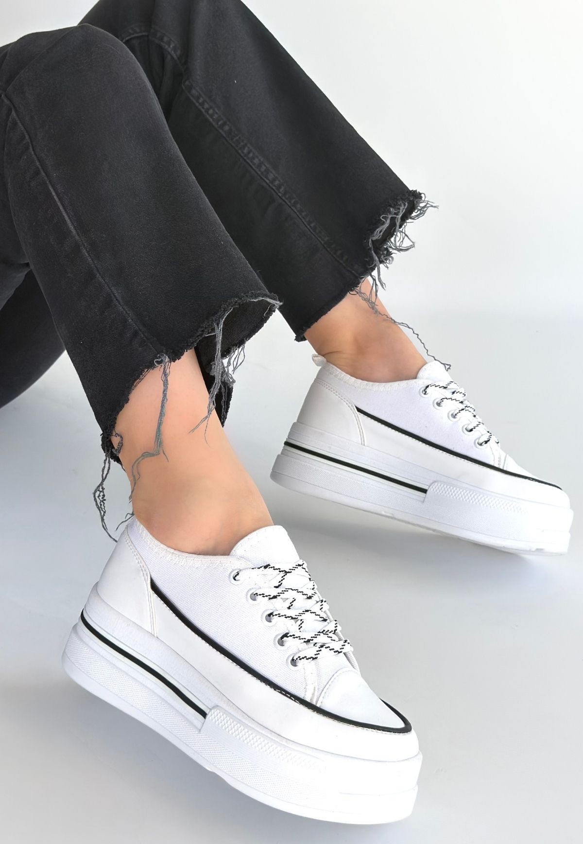 Dalen Beyaz Keten Bağcıklı Spor Ayakkabı