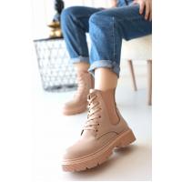 Detay : Topuklu Yandan Fermuarlı Lastikli Bağcıklı Bot