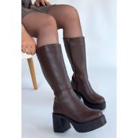 Disan Kahverengi Cilt Topuklu Çizme