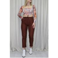 Duble Paça Yün Efekt Pantolon Taba - 1362