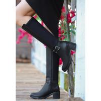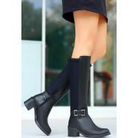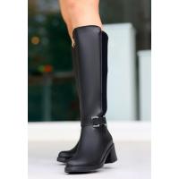 Detay: Topuklu Yandan Fermuarlı Arka Kısmı Streç Diz Altı Çizme