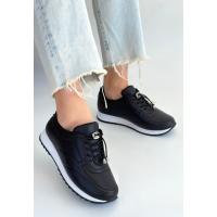 Finna Siyah Cilt Bağcıklı Spor Ayakkabı