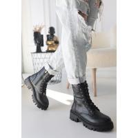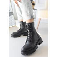 Flona Siyah Cilt Bağcıklı Bot