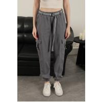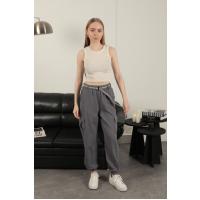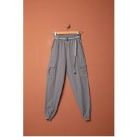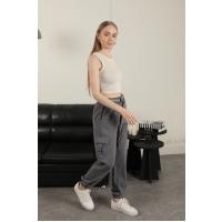 Gabardin Kumaş Kemerli Kargo Kadın Pantolon-Antrasit