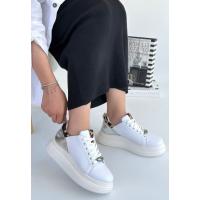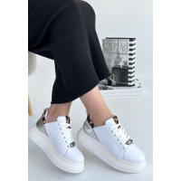 Gasta Beyaz Cilt Gümüş Detaylı Bağcıklı Spor Ayakkabı