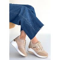 Geja Bej Cilt Bağcıklı Spor Ayakkabı