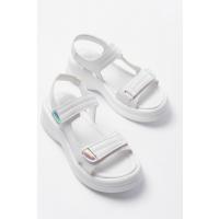 Ginya Beyaz Cilt Cırt Cırtlı Sandalet