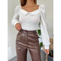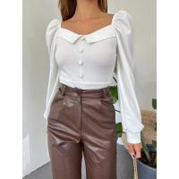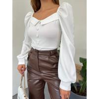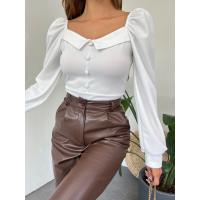 Gömlek Yaka Düğme Detaylı Prenses Kol Crep Bluz