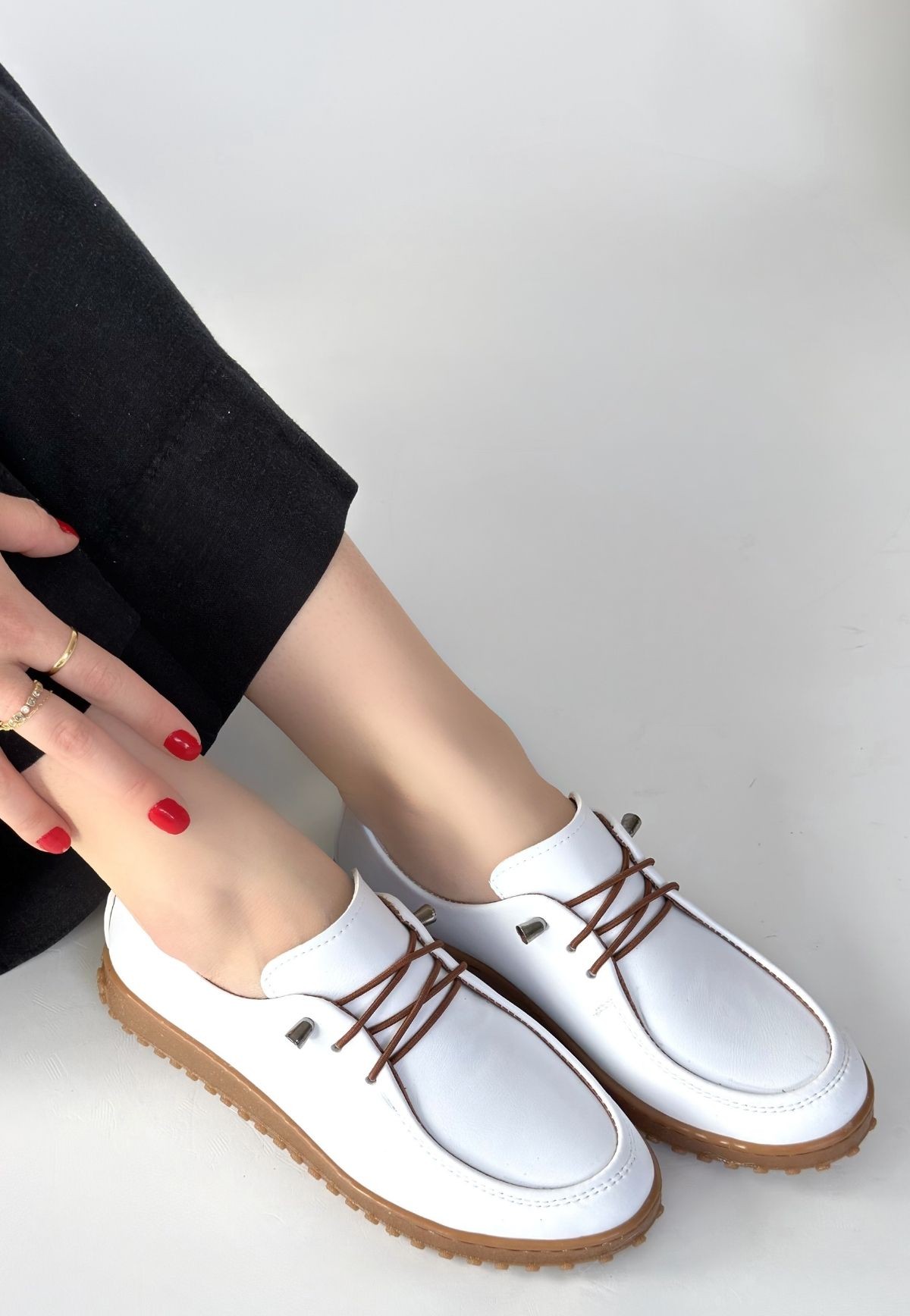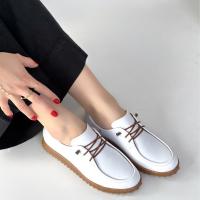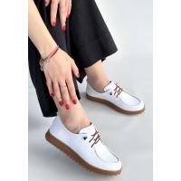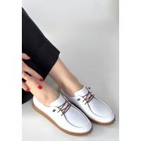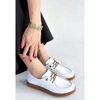 Guot Beyaz Cilt Bağcıklı Babet Ayakkabı