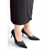 Gute Parlak Siyah Cilt Topuklu Ayakkabı