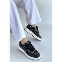 Hawer Siyah Cilt Bağcıklı Spor Ayakkabı