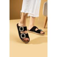 Hertas Siyah Nubuk Tokalı Terlik