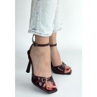 Hoste Bordo Rugan Topuklu Bilekten Kemerli Ayakkabı
