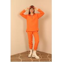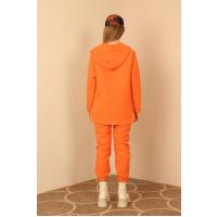 Jakar Kumaş Kapüşonlu Kapitone Takım-Oranj
