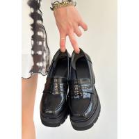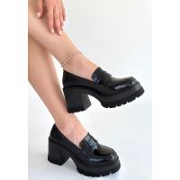 Janes Siyah Rugan Dolgu Topuk Ayakkabı