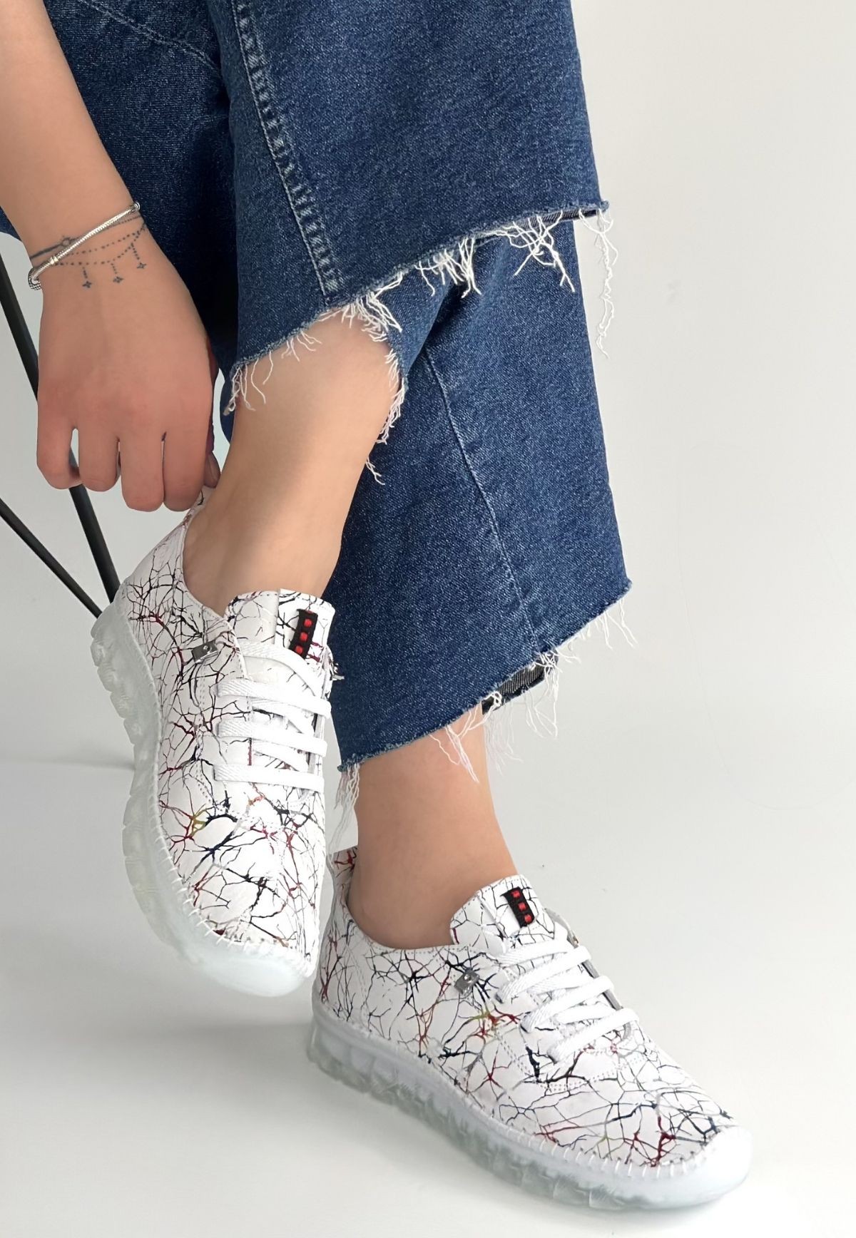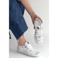 Jiten Beyaz Desenli Deri Bağcıklı Spor Ayakkabı