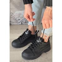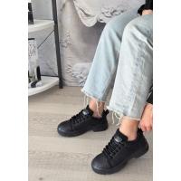 Jule Siyah Cilt Bağcıklı Spor Ayakkabı