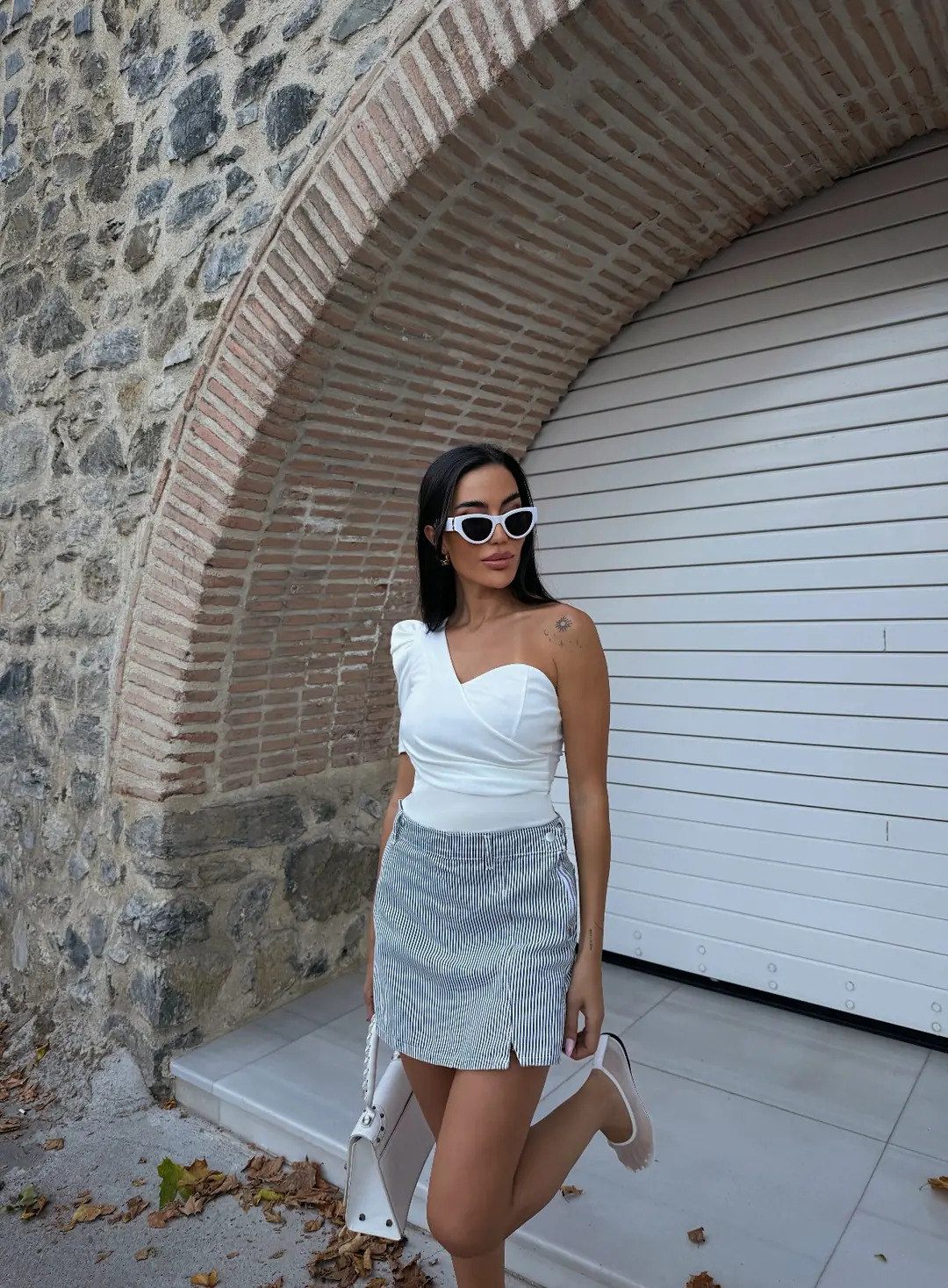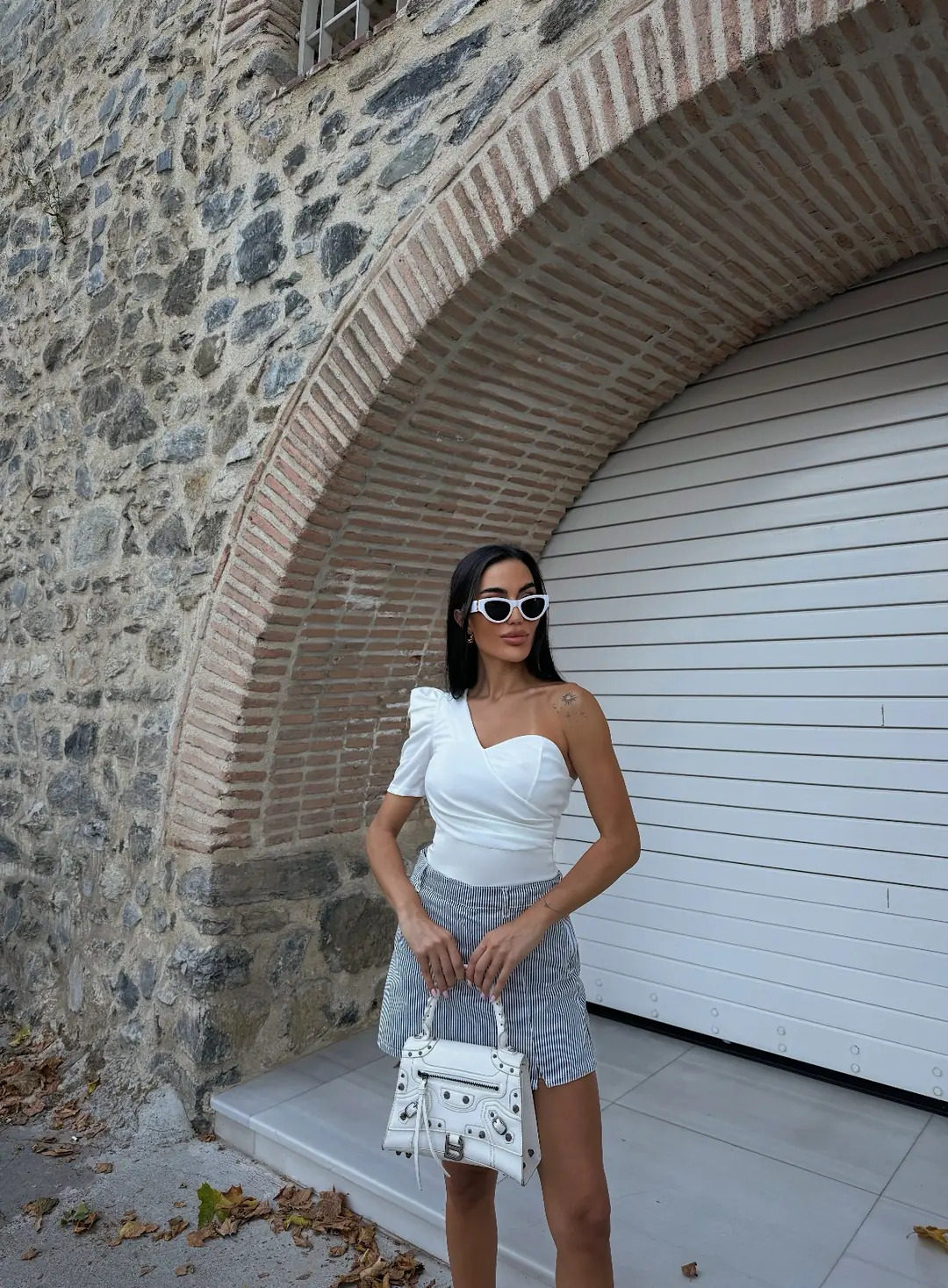 Tek Omuz Prenses Kol Crep Bluz - Ekru