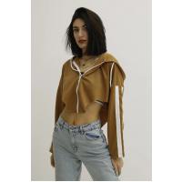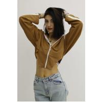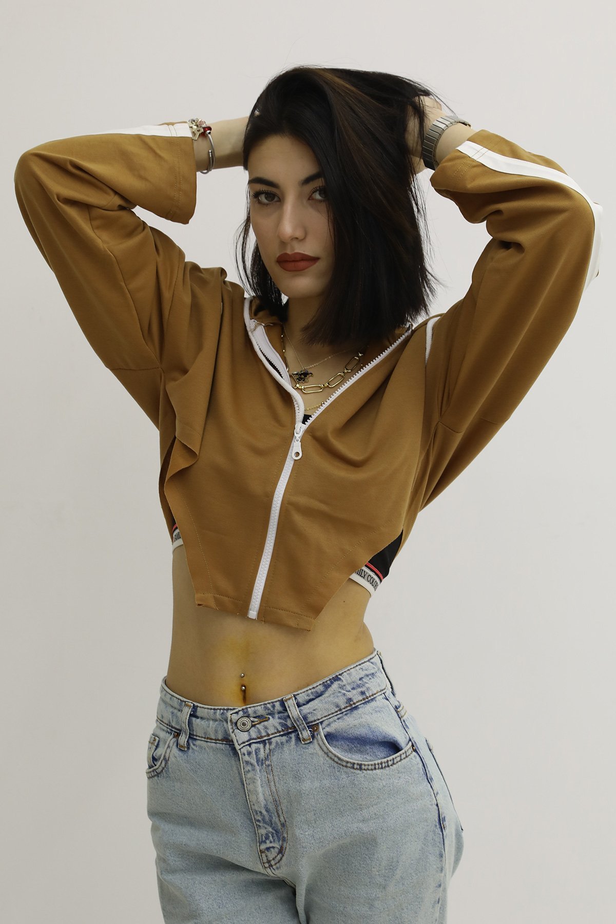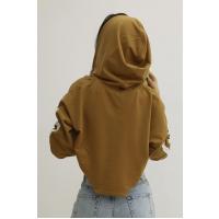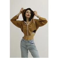 Kapşonlu Yan Dekolteli Sweat Taba - P-019669