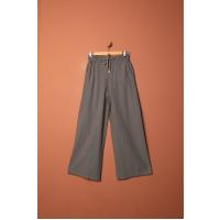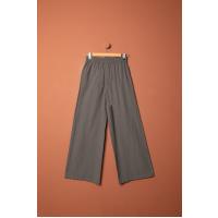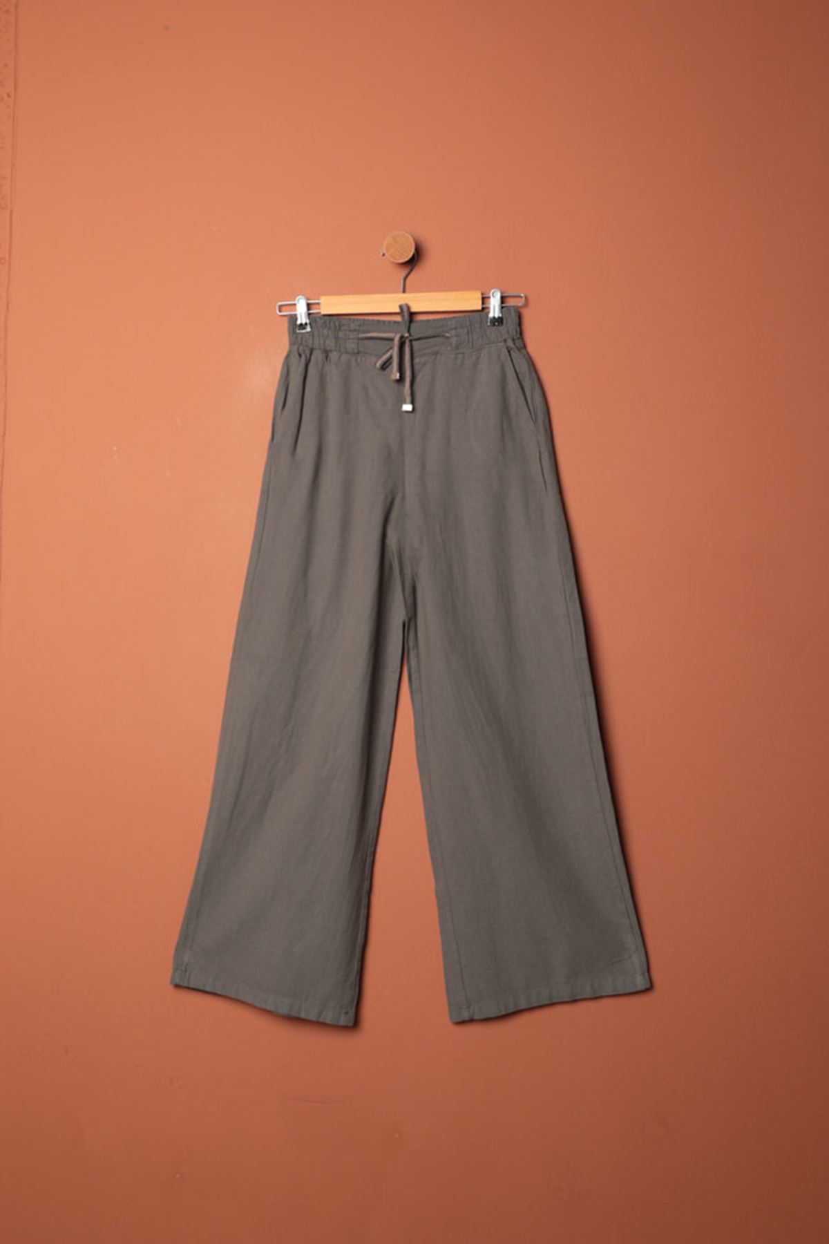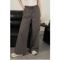Keten Kumaş Bol Paça Kadın Pantolon-Antrasit
