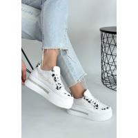 Lawin Beyaz Cilt Beyaz Simli Bağcıklı Spor Ayakkabı