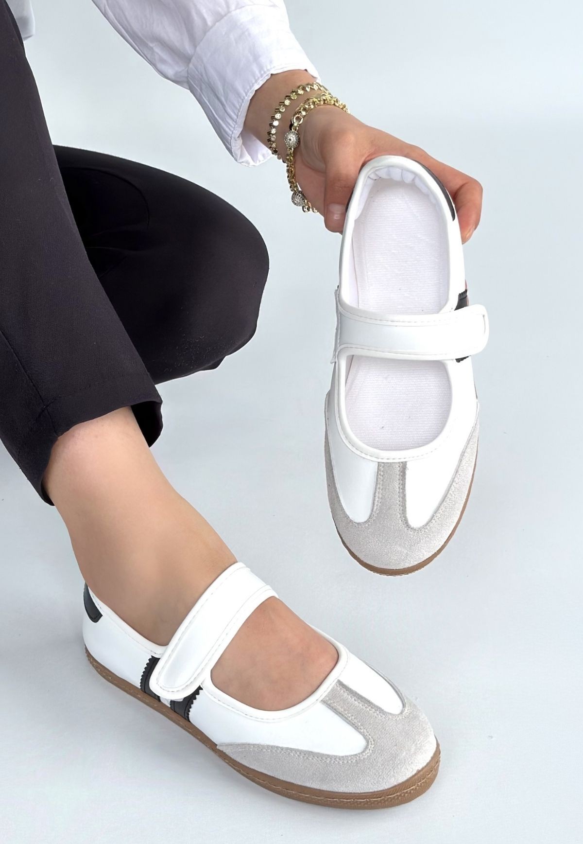 Menja Beyaz Cilt Cırt Cırtlı Babet Ayakkabı