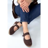 Menja Kahverengi Süet Cırt Cırtlı Babet Ayakkabı