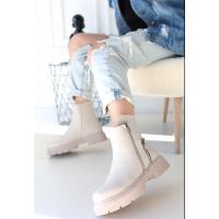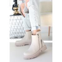 Menta Bej Cilt Fermuar Aksesuarlı Bot
