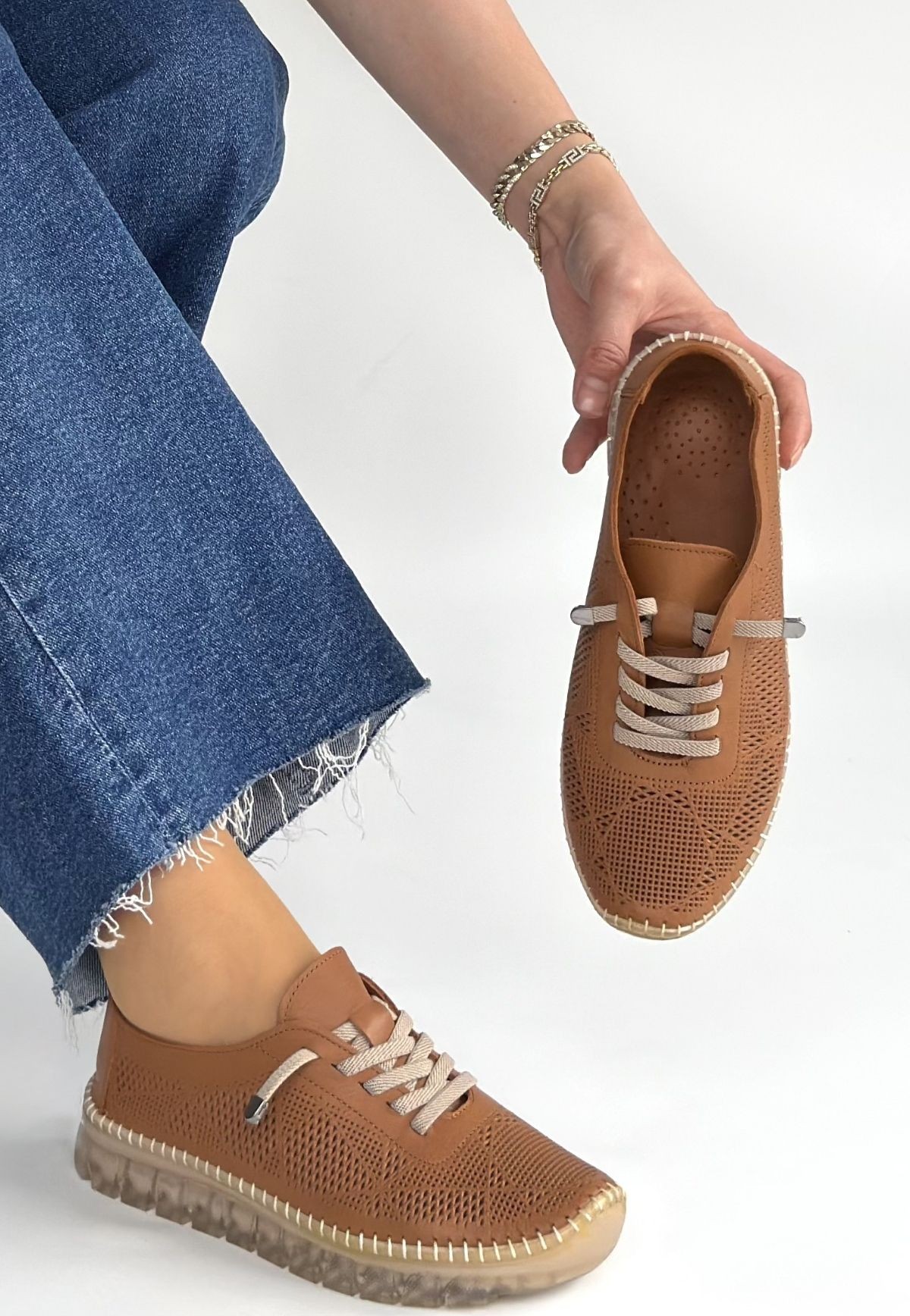 Merja Taba Deri Bağcıklı Spor Ayakkabı