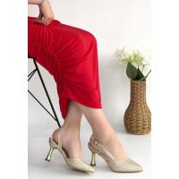 Minde Gold Cilt Simli Topuklu Ayakkabı
