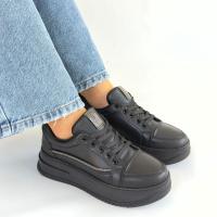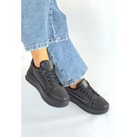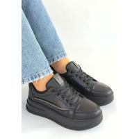 Natte Siyah Cilt Bağcıklı Spor Ayakkabı