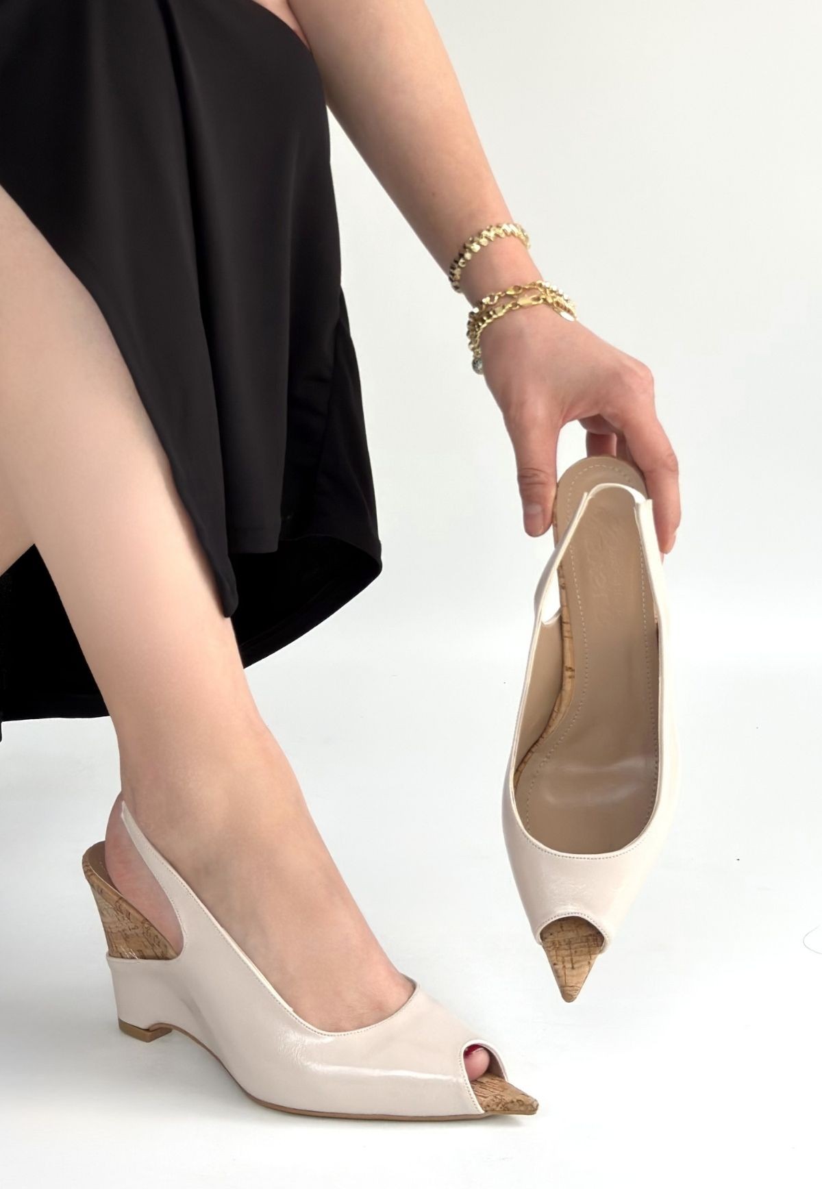 Nemba Beyaz Rugan Dolgu Topuk Ayakkabı