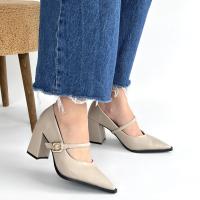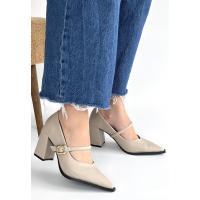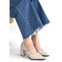 Nıvra Bej Cilt Topuklu Ayakkabı