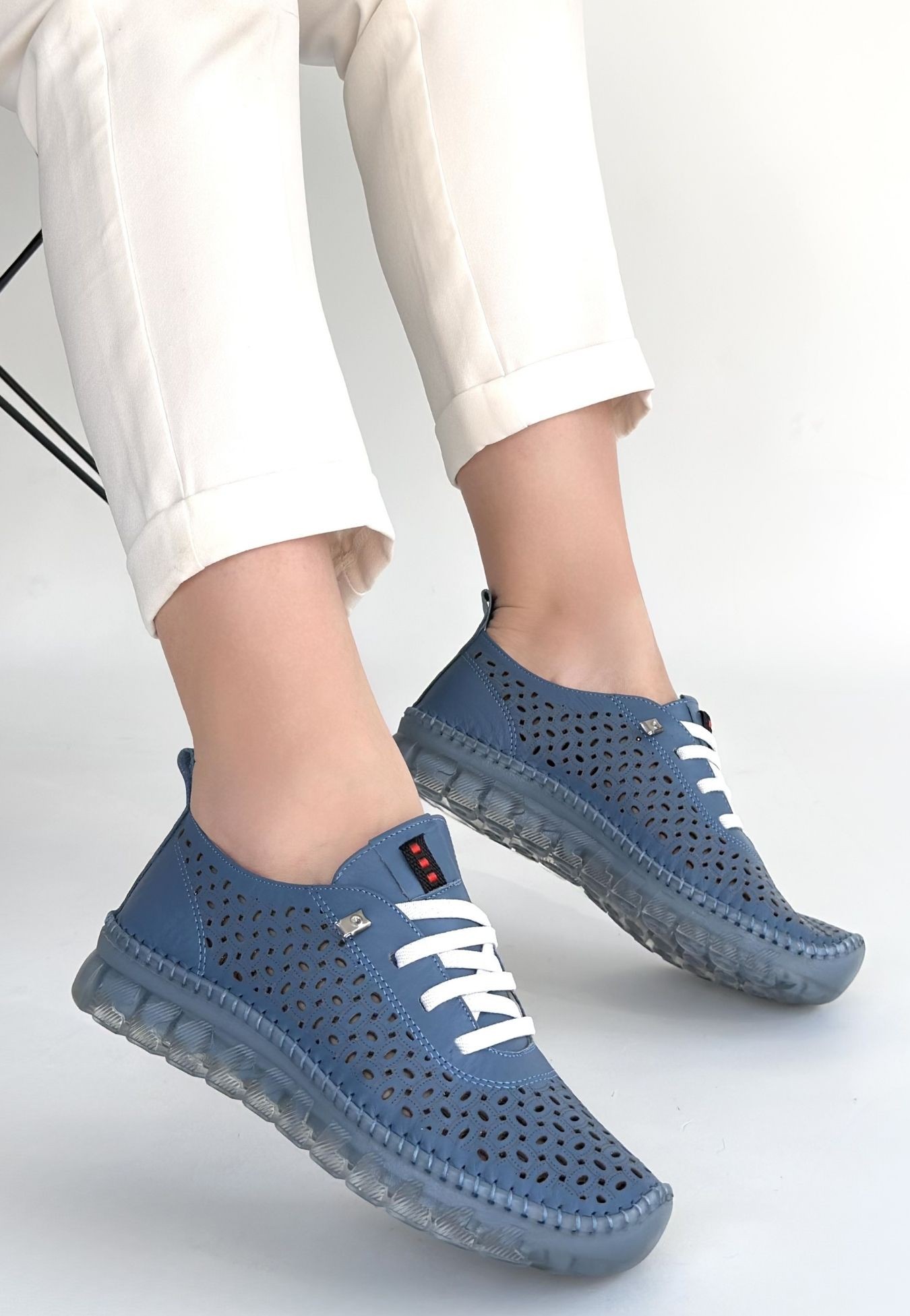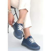 Otja Mavi Deri Lazerli Bağcıklı Spor Ayakkabı