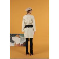 Petek Kumaş Garnili Oversize Kadın Sweat-Ekru