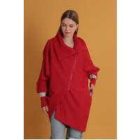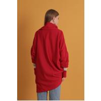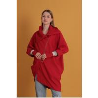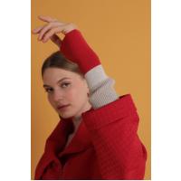 Petek Kumaş Kolu Ribana Detaylı Kadın Hırka-Kırmızı