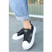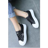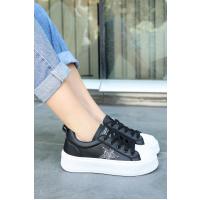 Piata Siyah Cilt Beyaz Tabanlı Bağcıklı Spor Ayakkabı