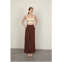 Poliviskon Kumaş Kadın Pantolon-Kahve